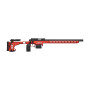 La crosse anodisée rouge en aluminium aéronautique haute résistance au design ANSCHÜTZ Hexagon Exterior Design (AHEX) allie une stabilité extrême à un poids réduit et une ergonomie de pointe. La crosse avant est compatible M-LOK à 3, 6 et 9 heures pour permettre le montage d'accessoires supplémentaires tels que des ailes avant, des butées de barricade, des poids supplémentaires et autres. Le rail ARCA-Swiss sur la face inférieure offre une flexibilité maximale pour d'autres accessoires, tandis que les trous indexés permettent l'utilisation de vis d'arrêt pour accessoires. La butée de barricade, qui est reculée au maximum, assure un contrôle parfait et garantit une prise ferme sur la barricade grâce à sa face avant texturée. La connexion modulaire de la crosse et la crosse légère, rigide et squelettée assurent un équilibre optimal. Grâce à la longueur de tir réglable en continu, le système s'adapte parfaitement à toutes les positions de tir. De plus, toutes les fonctions de la crosse peuvent être utilisées des deux côtés ou montées individuellement du côté préféré.